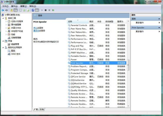 4、选择 “ print Spooler ” 设为开始状态。