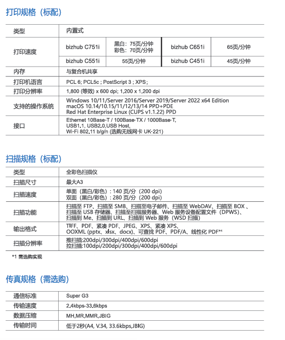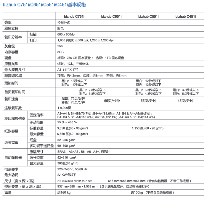 bizhub C651i A3 彩色多功能复合机租赁套餐