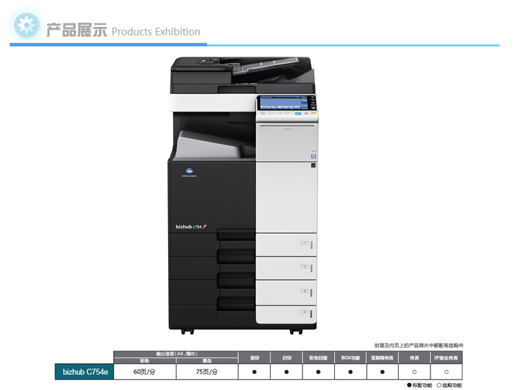 柯尼卡美能达C754e数码复合机 A3幅面/复印/打印/扫描/高速